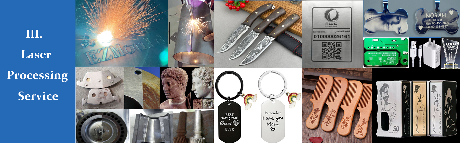 I2. WOOD BLANKS, I3. BAMBOO BLANKS, I4. PLASTIC BLANKS, III. LASER PROCESSING SERVICE, III3. LASER WELDING SERVICE